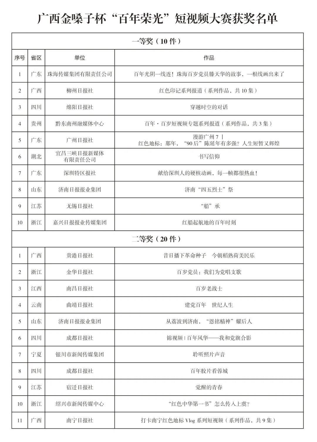 (原标题《广西金嗓子杯“百年荣光”城市党媒短视频大赛收官,这些优秀作品脱颖而出!》)