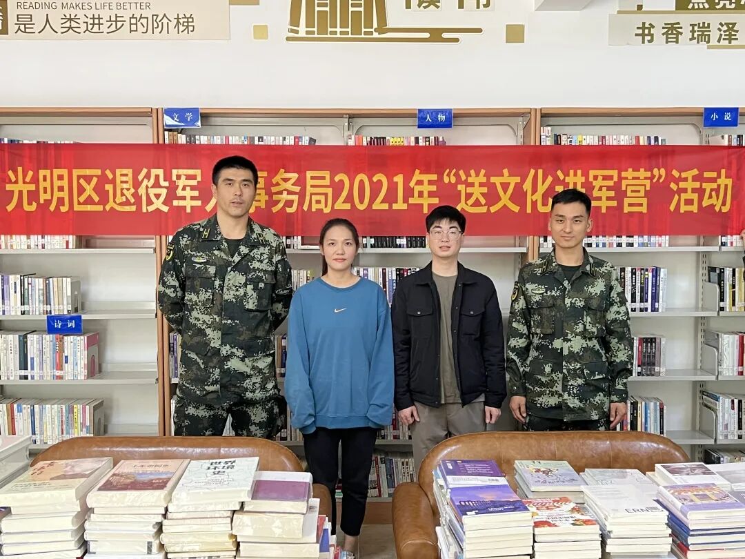 12月15日,光明区退役军人事务局开展“送文化进军营”活动。为做好本次活动,深圳市光明区退役军人事务局秉持贴近部队实际、满足官兵需求的原则,为驻区部队精心挑选包括党史、军事、科学、人文、经济、励志、实用技术等各类图书及期刊杂志1100余册,极大满足了部队官兵学习的需求,提高了广大官兵的学习积极性,为提高官兵文化软实力、建设学习型军营创造了有利条件,受到官兵们的热烈欢迎。