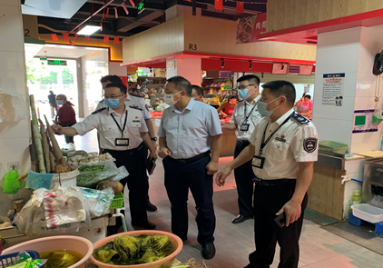 坪山区石井街道开展辖区农贸市场农产品销售质量安全专项检查,督导“创三城”相关工作。
