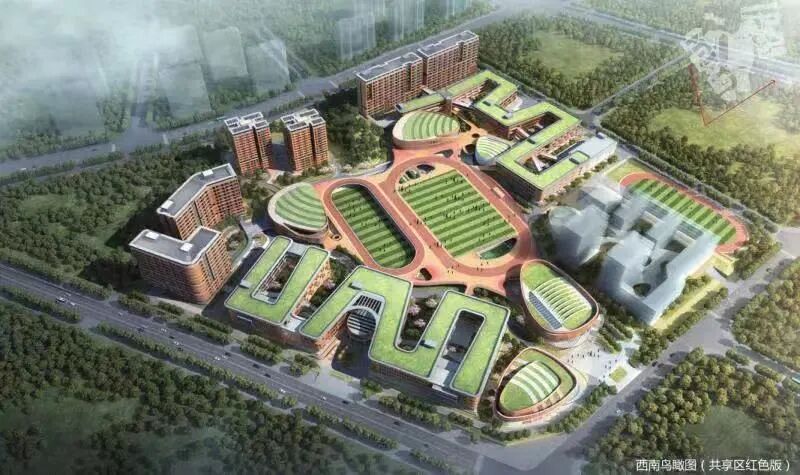 与普通联合高中不同的是,光明高中园将探索建立共享共管机制,体育场馆、图书馆等通用设施共享,整体设计充满未来感、现代风。
