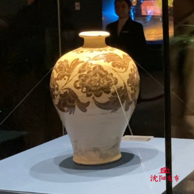 按照珍稀程度,沈阳博物馆拟定的“镇馆三宝”为:辽代纯金面具(中国第三、辽宁第一)、白釉黑彩梅瓶(海内孤品,可能是秋捺钵狩猎场景第一次出现在瓷器上)与白釉褐彩梅瓶(证明釉下彩这种工艺在辽代已出现,比以往认知提前一个世纪)。