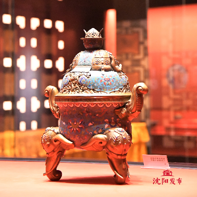 《宫苑佳器 焕彩凝祥——沈阳故宫藏清宫珐琅器展》背景选用金红琥珀色,华美大气。李浩摄