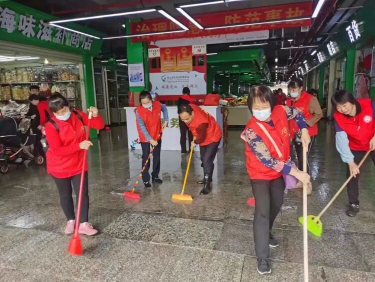 每周“卫小二”来到菜市场参加志愿服务,清洁卫生死角,张贴海报,手持举牌宣传防疫和城市文明。他们广泛动员更多义工、商户、市场管理人员积极行动,在做好“每周清洁1小时”活动的同时,宣扬城市文明,养成卫生习惯。