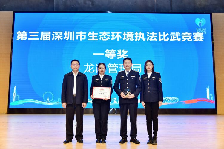 在此次获奖之前,龙岗管理局还获得了生态环境部授予“全国生态环境保护执法大练兵表现突出集体”荣誉称号,是广东省2家获此殊荣的县级单位之一;选派的执法人员代表深圳市参加广东省生态环境执法大练兵比武并获团体一等奖。