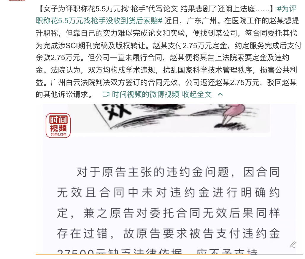 据科学网消息,近年来关于医学论文代写的类似纠纷并不罕见。法院判决结果较为一致,均认为合同无效,乙方应退还支付费用。