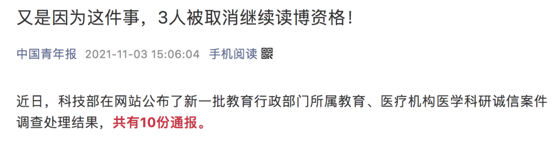 在科技部12月公布的医学科研诚信案件调查处理结果中,多人因论文代写代投,被取消继续攻读博士学位资格。
