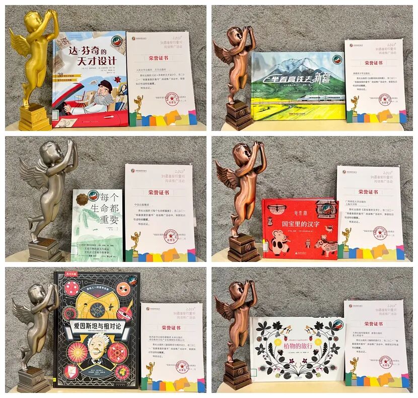 《达·芬奇的天才设计》获知识性读物组金奖,《每个生命都重要》《爱因斯坦与相对论》获知识性读物组银奖,《国宝里的汉字》《植物的旅行》《坐着高铁去新疆》获知识性读物组铜奖。