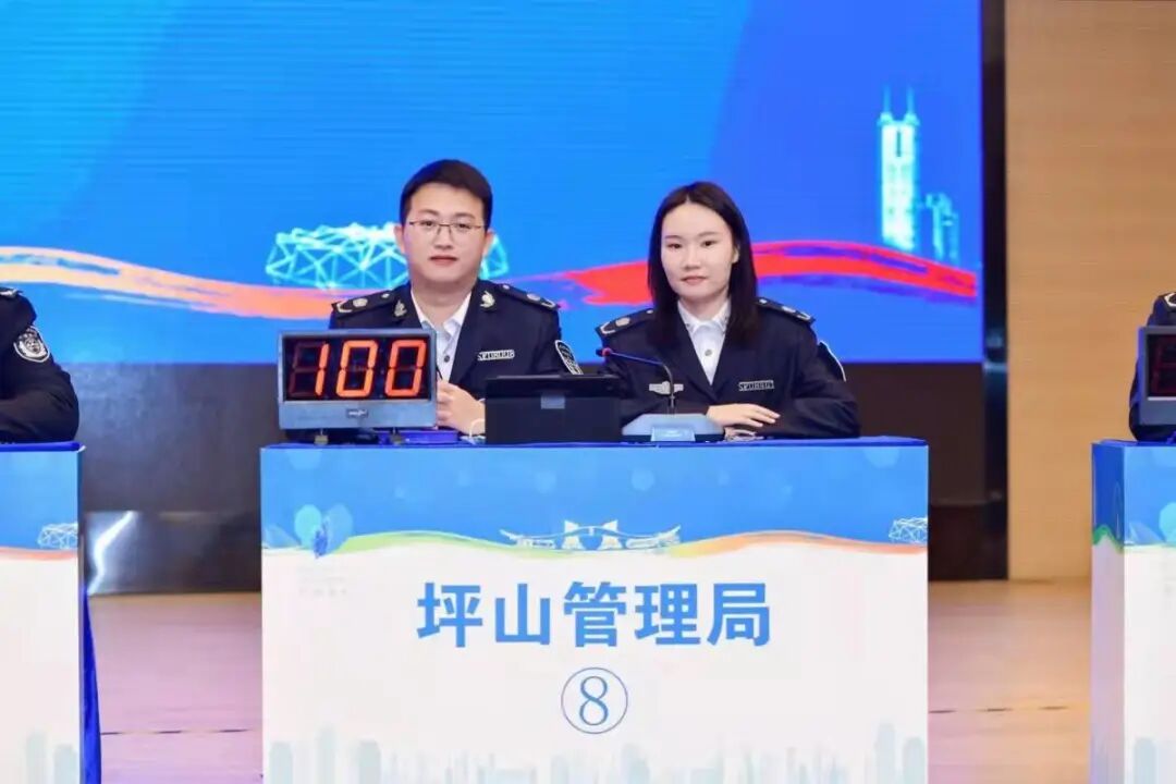 决赛当天,分为“基础答题”“执法亮点展示”两个赛段。其中,“基础答题”环节,主要考查执法人员对习近平生态文明思想、新修法律法规以及近三年深圳市生态环境综合执法支队印发的系列执法检查操作指引的掌握情况。“执法亮点展示”环节则是各区自选展示形式,结合《深圳市优化生态环境保护执法方式提高执法效能实施方案》,精炼阐释本单位2021年度执法工作情况和执法亮点。