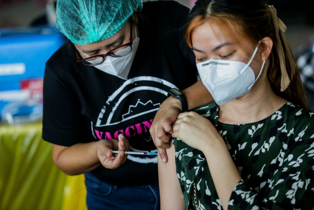 2021年12月16日,市民在菲律宾帕赛市一家商场的疫苗接种点接种新冠疫苗。