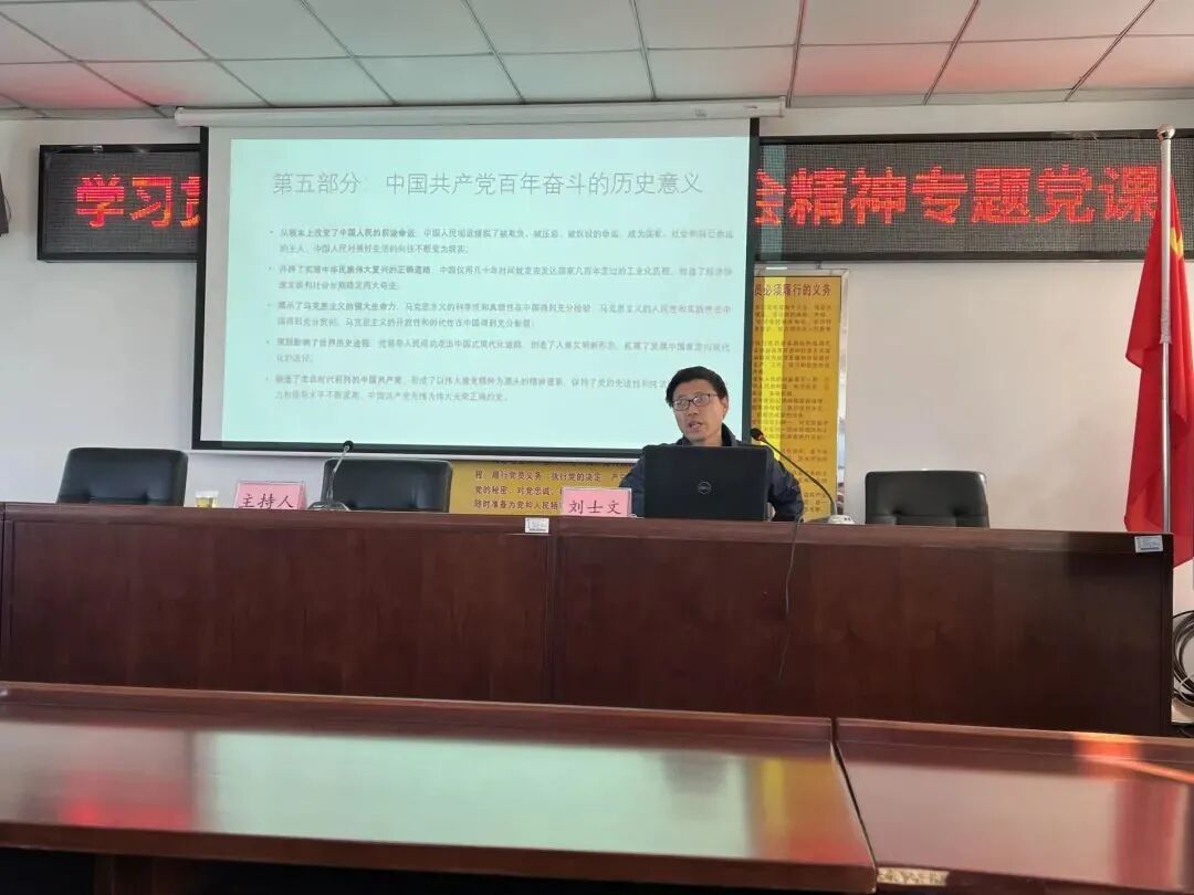 刘士文老师介绍了党的十九届六中全会概况,回顾了党的百年奋斗历程中取得的重大成果和历史经验,并通过大量鲜活实例,深入浅出地宣讲了党的十九届六中全会的历史意义和重要历史经验,带领大家深刻领会党的十九届六中全会精神。