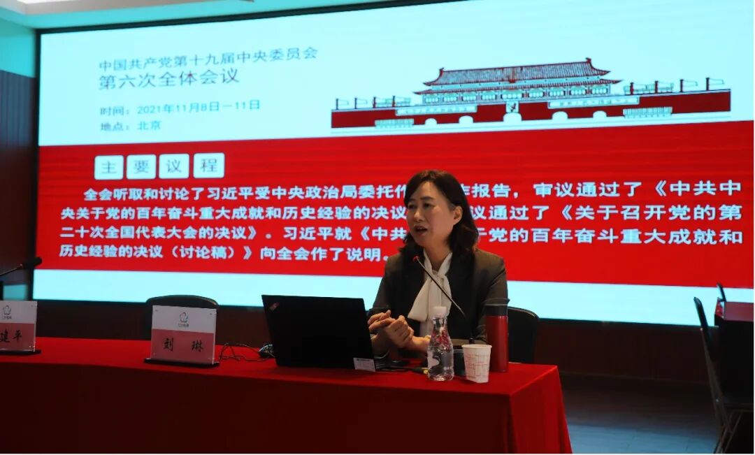 会议邀请中共深圳市委党校教授刘琳作“党的百年奋斗重大成就和历史经验——学习贯彻十九届六中全会精神”专题授课。从重大意义、主要内容、基本要求三个方面解析了《中共中央关于党的百年奋斗重大成就和历史经验的决议》,刘教授指出,要原原本本读原文,深刻领会《决议》的五大历史意义和十大历史经验,树立正确的党史观,不断提高政治站位,主动投身于中华民族的复兴伟业中。