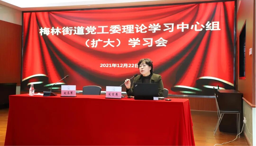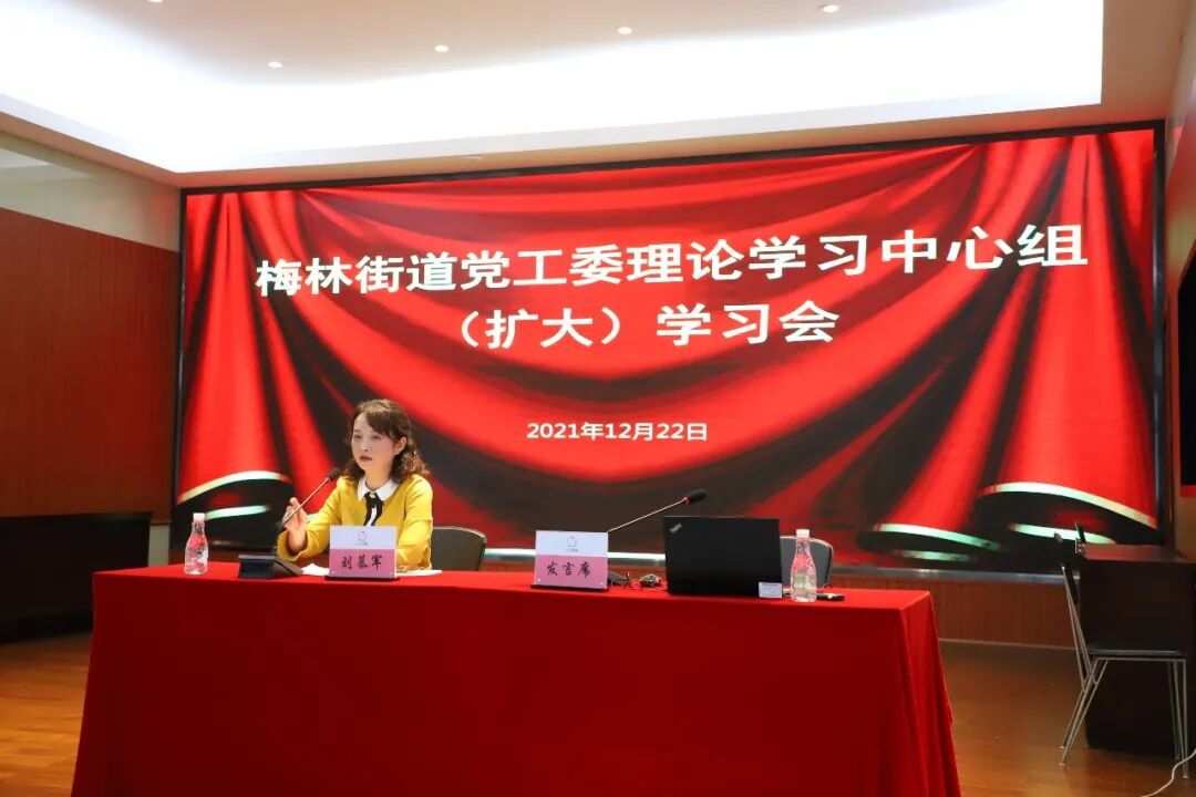 近日,在梅林街道九楼会议室召开梅林街道党工委理论学习中心组(扩大)学习会,街道党工委书记邵建平主持会议,街道党工委、办事处领导,机关各支部书记、支委委员,机关各部门负责人,各社区党委书记参加会议。