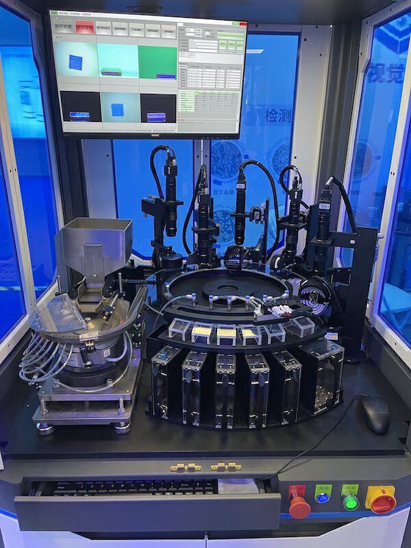 一台方方正正的视觉机器,里面装着六个摄像头,这是成立于2020年的深圳思博睿研发的晶片视觉机器人。当把需要检测的晶片放到专用振动盘自动上料机上,晶片在自动导轨迹不断转动送料时,六个摄像头会依次自动通过适当的光源和图像传感器,对晶片的外观自动拍照,并把照片传送到机器人的屏幕上。如果晶片外观有脏污、划痕、损耗等问题,被第一个摄像头拍照捕捉到后,后面的摄像头会自动停止拍照,成功通关六个摄像头考验的晶片进入下一道工序,而未通过考验的晶片则被传送到一个专门用来装次品的“储藏桶”。