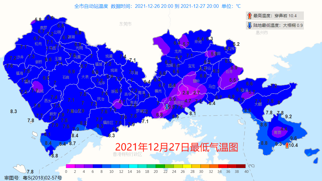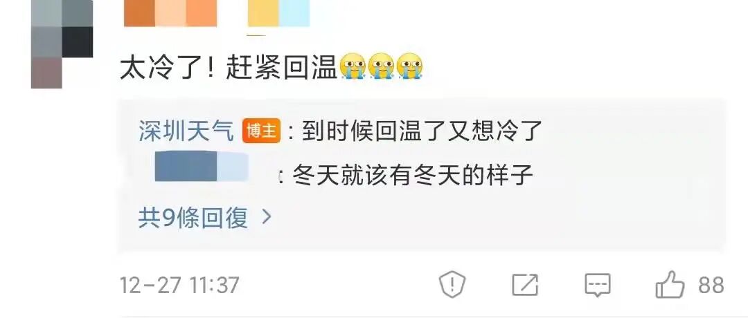 27日深圳国家基本气象站出现过程最低气温7.6℃,全市平均体感温度仅有3.9℃,真·湿冷。