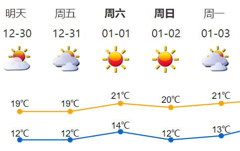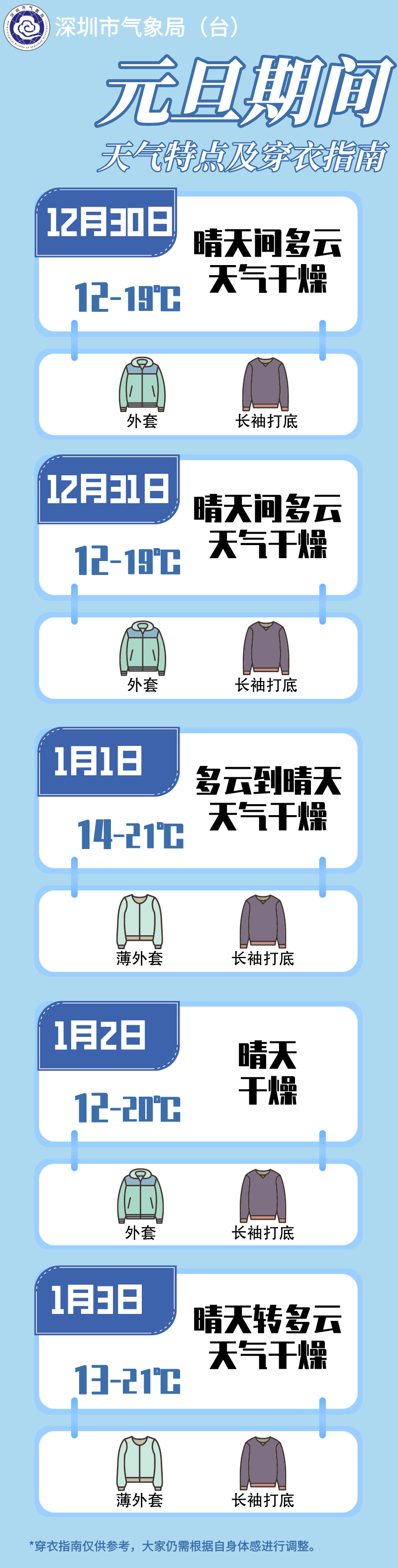 元旦假期(1月1-3日)晴天间多云为主,天气干燥,早晚寒凉,白天较温暖。