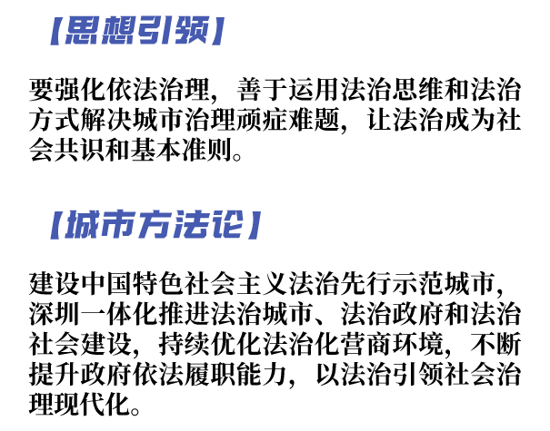 作为一座常住人口超1756万、经济总量位居亚洲前列的国际化超大型城市,深圳始终将人民对美好生活的向往作为奋斗目标和改革发展的出发点、落脚点,用法治引领社会治理全域,将法治理念深入城市治理脊髓,打造出精彩的“深圳实践”。
