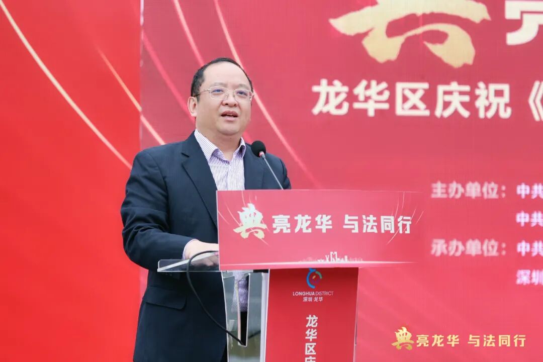 深圳市司法局党委书记、局长蒋溪林,龙华区委书记王卫,龙华区委副书记、区长雷卫华,深圳市教育局党组成员、副局长赵立等领导莅临本次活动。此外,参与此次活动的还有区直有关单位、各街道主要负责同志,以及律师、学生和市民代表。