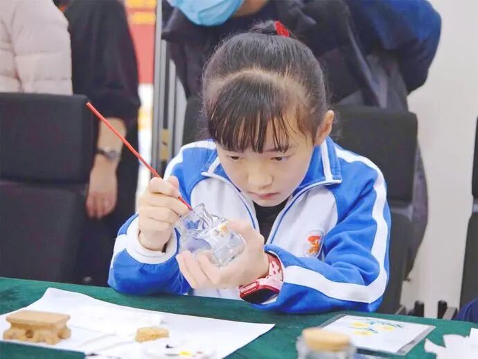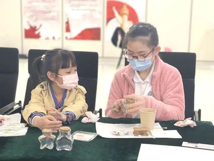 本次活动由“深港少年携手同学行动”“深港青年携手同业行动”“深港青年携手同创行动”三大板块组成。在活动现场,一首《我和我的祖国》合奏拉开了活动帷幕,深圳非遗内画传承人杨艺为学生们讲解了非遗知识,并现场进行内画创作展示,现场气氛热烈。学生们围在桌子旁,聚精会神地学习创作方法,他们零距离感受非遗项目的精髓,领略了中华民俗艺术瑰宝的无穷魅力,爱上了非物质文化遗产传承与保护,浓郁的传统文化气氛在活动现场内洋溢。30名深港学子在导师的引导下创作出属于自己独一无二的内画作品。