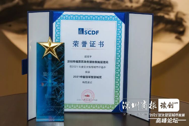 近期,由国家信息中心主办的“2021亚太智慧城市发展论坛” 在深圳开启。福田区政务服务数据管理局在此次论坛的“2021年度亚太智慧城市评选”中荣获“2021中国领军智慧城区”奖项。
