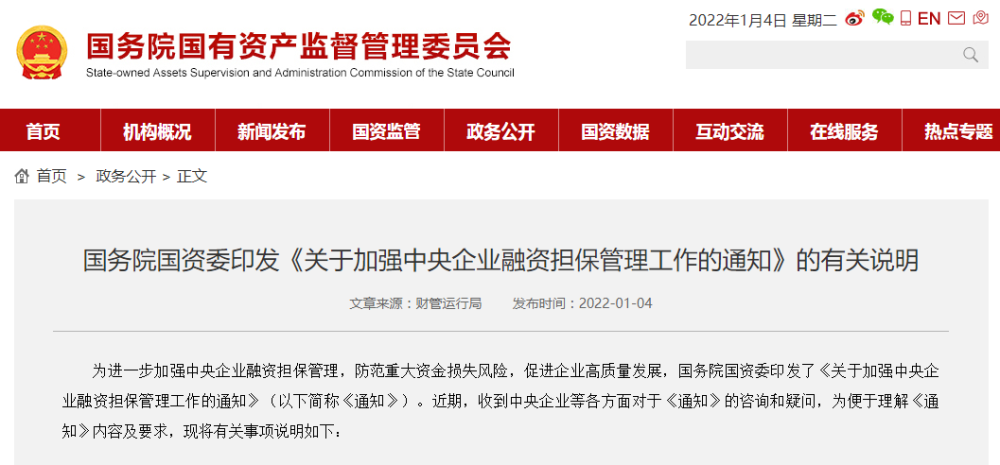 根据国资委日前印发的《关于加强中央企业融资担保管理工作的通知》的有关说明,通知进一步完善了中央企业融资担保业务监管制度体系,具有几大特点——