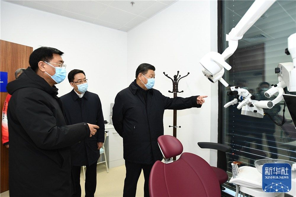 1月4日,中共中央总书记、国家主席、中央军委主席习近平在北京考察2022年冬奥会、冬残奥会筹办备赛工作。这是4日上午,习近平在北京冬奥村(冬残奥村)居住区综合诊所考察。新华社记者 燕雁 摄