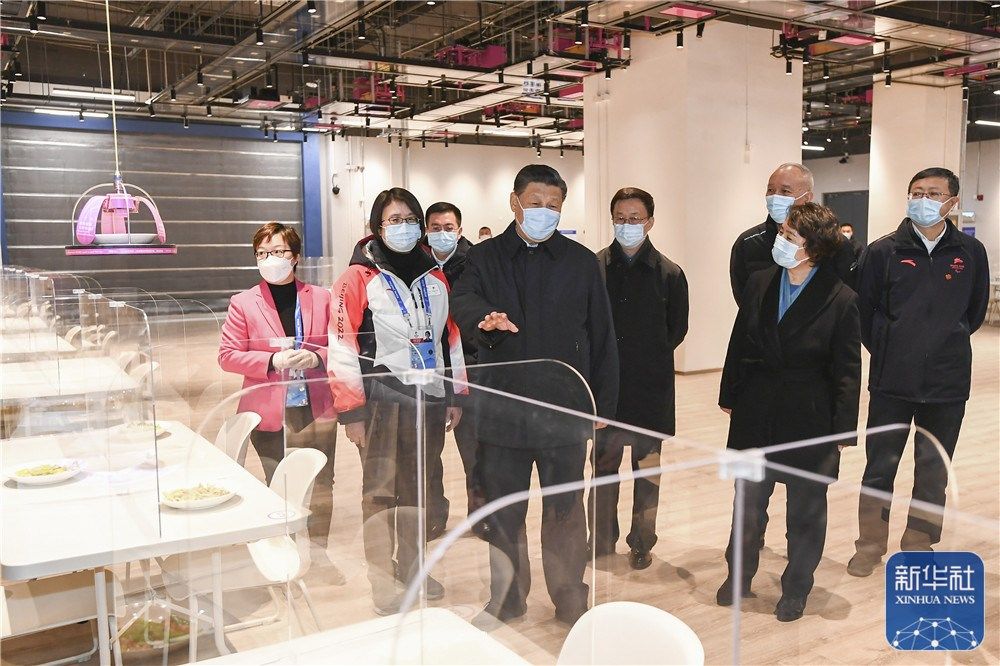 北京冬奥会、冬残奥会主媒体中心毗邻国家速滑馆,赛时将作为全球注册平面媒体和转播商的工作总部。习近平先后走进主新闻发布厅、媒体工作间、智慧餐厅,实地了解中心建设运行、完善防疫措施、打造全流程服务模式,以及赛时信息发布、媒体运行、餐饮服务等情况。在媒体工作间,习近平同正在做准备的媒体记者亲切交流。在智慧餐厅,习近平察看智能餐饮设备运行情况,了解中心加强食品安全监管情况。他强调,北京冬奥会、冬残奥会的主媒体中心,把主新闻中心和国际广播中心整合起来,统筹赛时服务功能和赛后会展功能,做到了绿色办奥、节俭办奥。他指出,对北京冬奥会、冬残奥会来讲,做好新冠肺炎疫情防控工作是最大的考验。受疫情影响,北京冬奥会、冬残奥会现场观赛受到很大限制,新闻传播比往届更加重要。主媒体中心要做好各项运行、服务、保障工作,既要保障好各项新闻报道和传输转播功能的安全运行,又要确保疫情防控安全。要严格落实“双闭环”管理,完善场馆防疫措施,尽最大努力防止疫情发生。要把食品安全放在第一位,越是智能化,越要注重源头把控,确保万无一失。他希望国内外媒体和记者深入报道,讲好各国奥运健儿激情拼搏的故事,讲好中国筹办北京冬奥会、冬残奥会的故事,讲好中国人民热情好客的故事,全面、立体、生动地把北京冬奥盛会传到全世界。