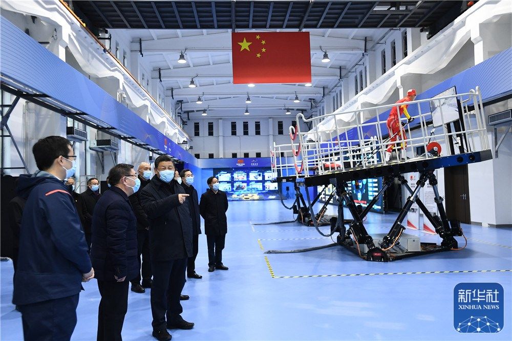 1月4日,中共中央总书记、国家主席、中央军委主席习近平在北京考察2022年冬奥会、冬残奥会筹办备赛工作。这是4日下午,习近平在二七厂冰雪项目训练基地六自由度训练馆考察。新华社记者 燕雁 摄