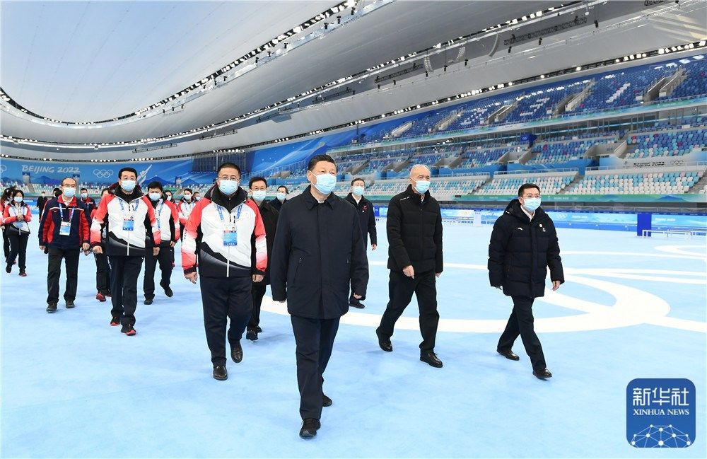1月4日,中共中央总书记、国家主席、中央军委主席习近平在北京考察2022年冬奥会、冬残奥会筹办备赛工作。这是4日上午,习近平在国家速滑馆考察。新华社记者 谢环驰 摄
