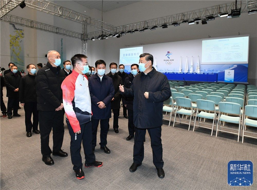 1月4日,习近平在中共中央政治局委员、北京市委书记蔡奇和市长陈吉宁陪同下,深入体育场馆、媒体中心、训练基地等,实地了解筹办备赛情况。