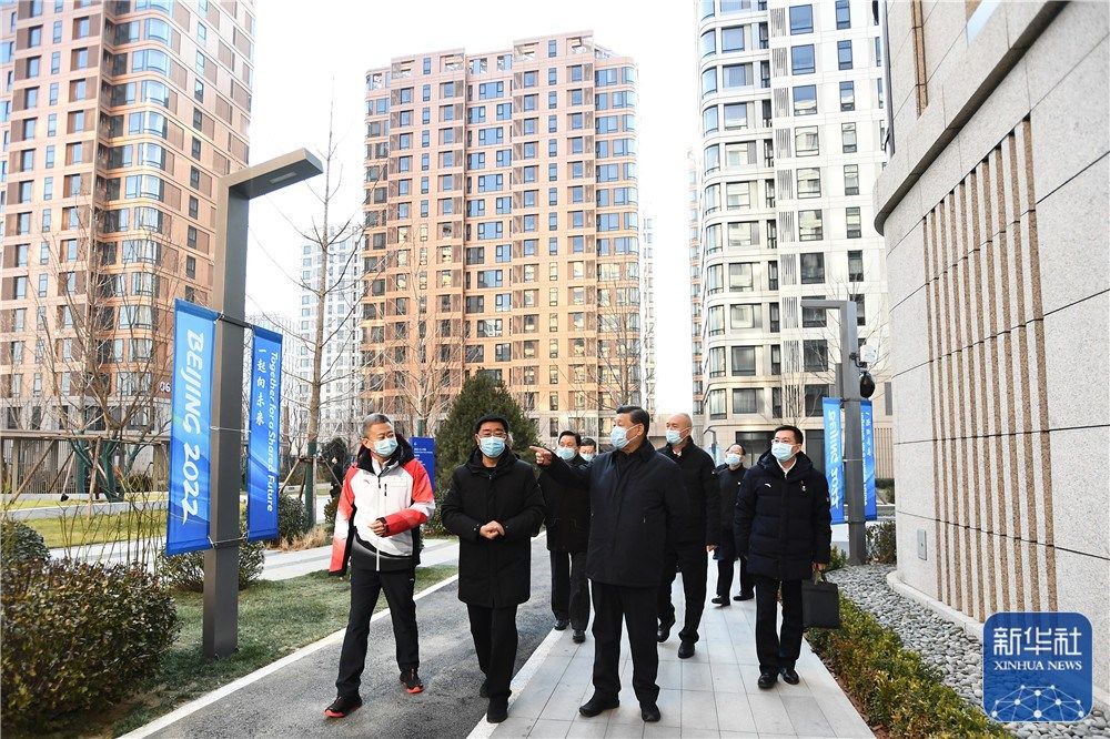 1月4日,中共中央总书记、国家主席、中央军委主席习近平在北京考察2022年冬奥会、冬残奥会筹办备赛工作。这是4日上午,习近平在北京冬奥村(冬残奥村)居住区考察。新华社记者 燕雁 摄
