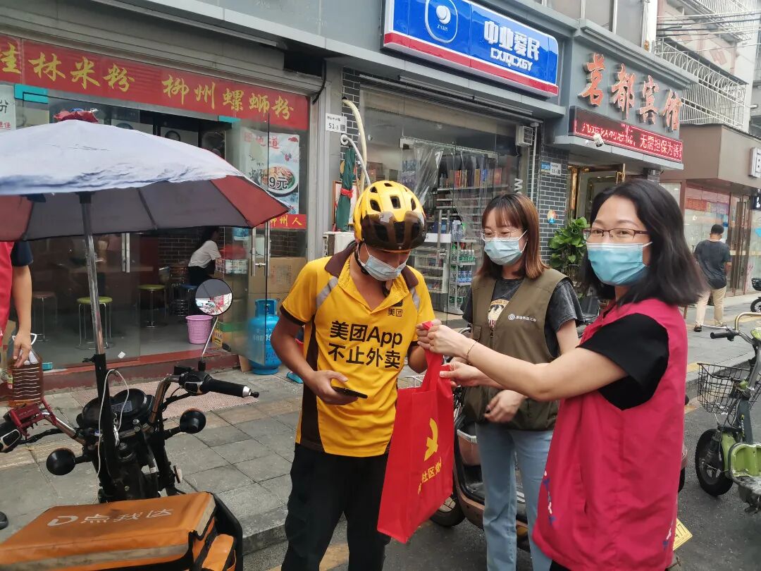党委带领关爱队伍,以“一线工作法”方式,密切党群联系,让群众知道“惠从党来”,由社区党委、社工、志愿者、商家、党员多元主体参与的关爱队伍,以“走动式”的方式,将“关爱礼包”送到快递小哥、外卖小哥、防疫人员、环卫工等一线劳动工作者的手中,走进孤寡、高龄、残疾老年人家里,为他们送温暖,了解民情民意,打通关爱群众“最后一米”,累积开展4期关爱服务,共发放200多份“关爱礼包”。