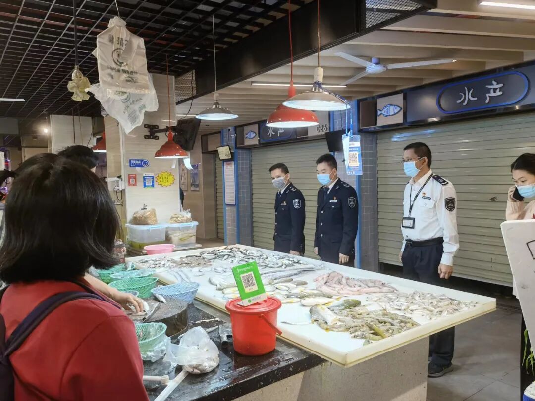 深圳新一轮疫情又起,为保障酒精口罩等防疫物资,及粮油肉菜等居民生活物资的供应,维护好市场秩序和价格稳定,1月7日下午,深圳市市场监督管理局市场稽查局、市市场监管局龙岗监管局、布吉监管所三级联动,火速对管控社区周边大型商超、药店、生鲜门店等单位开展检查,重点检查菜肉粮油等生活必需品、口罩酒精等防护用品的供应与价格情况。