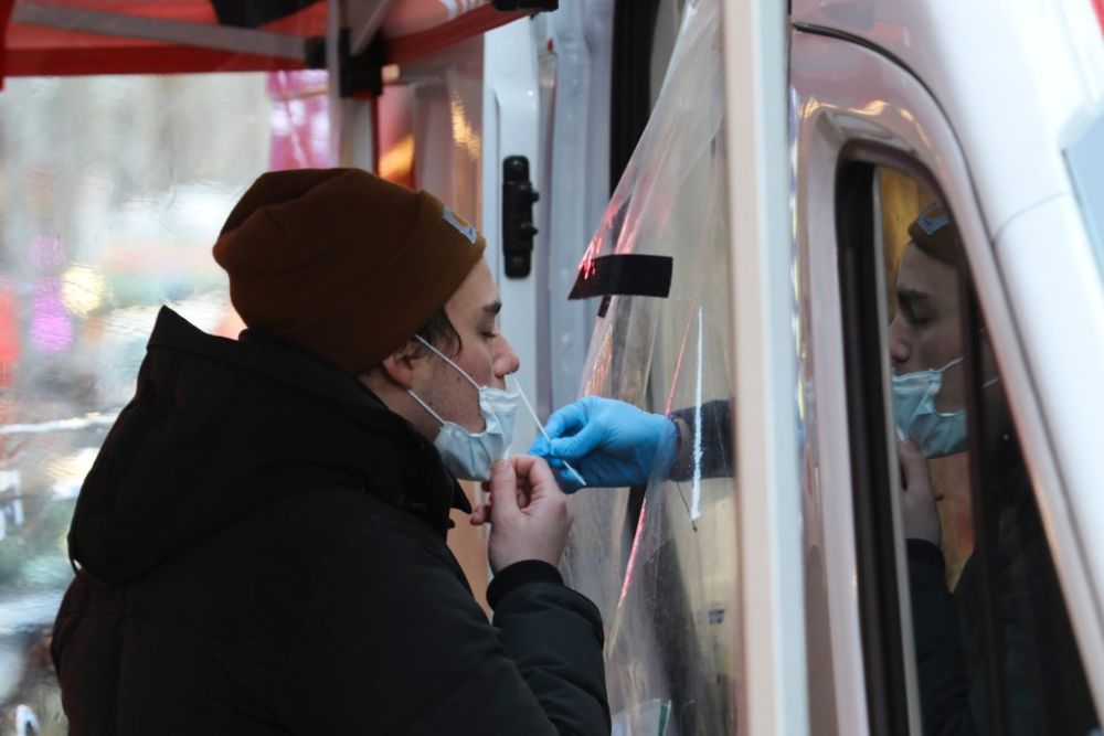 这是1月4日,一名男子在美国纽约街头接受新冠检测。(新华社记者王迎摄)