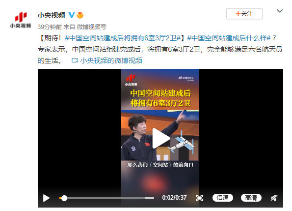 (原标题《期待!中国空间站建成后将拥有6室3厅2卫》)