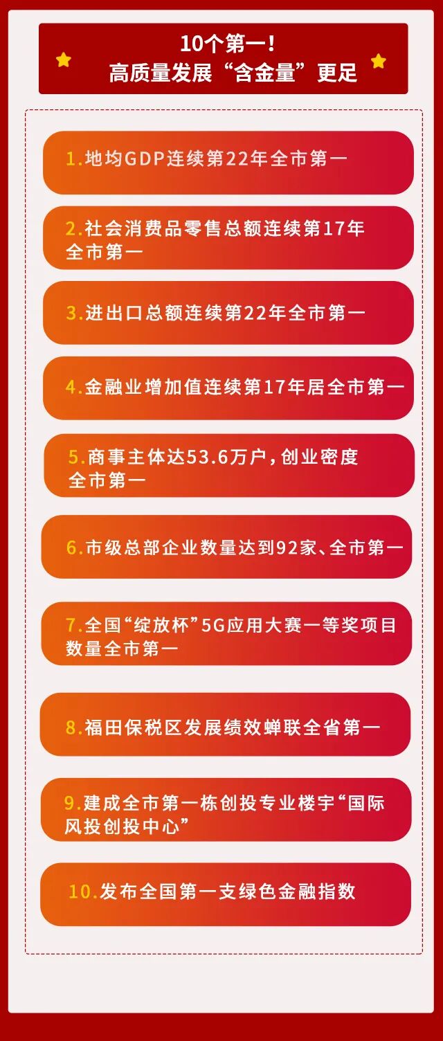 1月10日,福田区委八届二次全会在福田会堂召开,回顾了2021年工作、展望了2022年工作任务,尽管全会报告篇幅不长,但有许多“第一”、“率先”,精彩纷呈,以沉甸甸的业绩、实打实的成果,在落实“国家战略”、践行“城市使命”中充分展现“福田担当”。