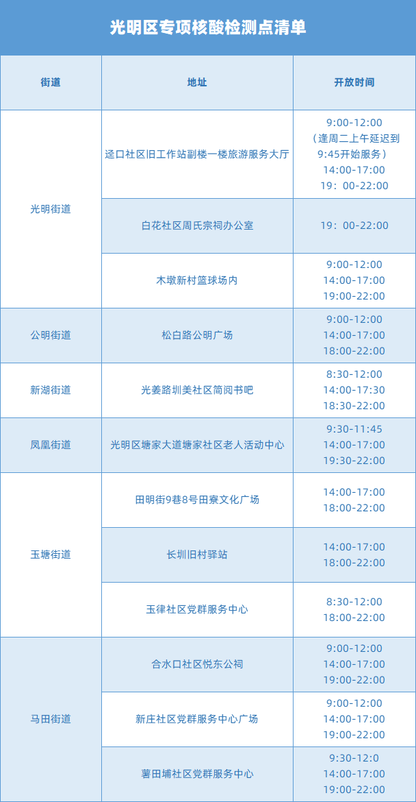 @光明er,光明区12个核酸检测采样点面向重点专项人群开放。