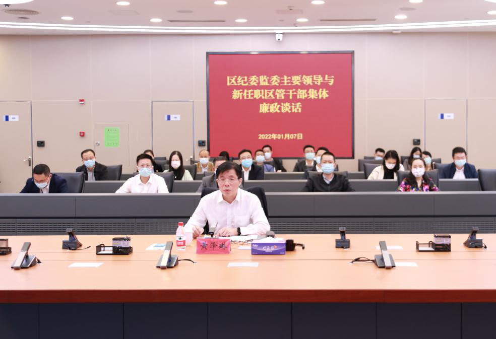 近日,福田区举行新任职区管领导干部集体廉政谈话活动,按疫情防控要求采取线上线下结合方式进行,全区100多名新任职区管干部分别在区和街道共13个会场参加,并现场签署《廉政承诺书》,作为重要文件归入领导干部廉政档案,实现了换届以来全区新任职区管干部廉政谈话全覆盖。