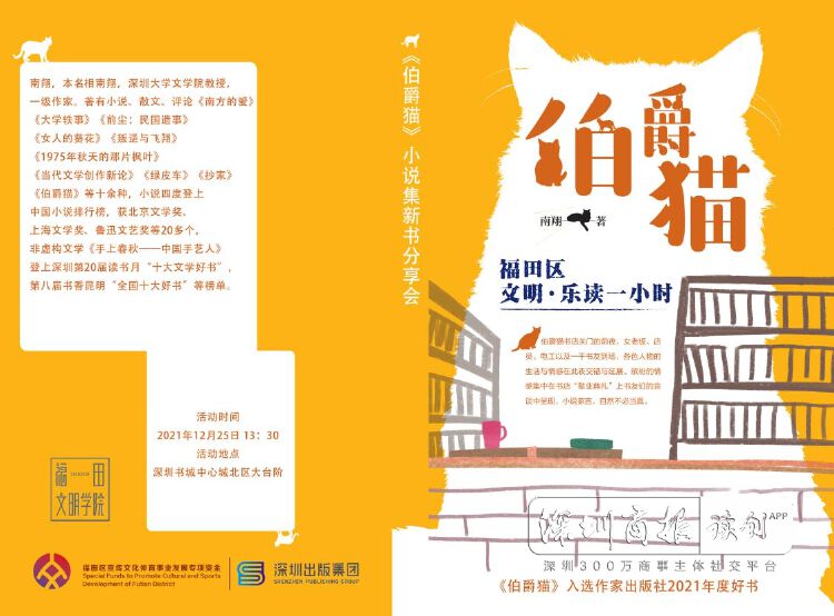 日前,福田区“文明·乐读一小时”暨当代著名作家南翔新书《伯爵猫》发布会在深圳中心书城北区大台阶举行。据悉,《伯爵猫》入选作家出版社2021年度好书。活动现场,南翔分享自己的灵感来源与思维旨趣,给热爱文学的读者朋友们以面对面的启迪。