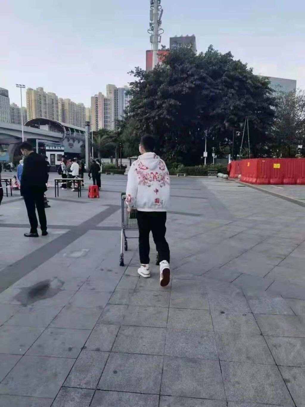 当天早上,年轻小伙到核酸采样点送爱心早餐。被工作人员问名字时,他说他叫中国人,随后转身离开留下一个酷酷的背影,衣服上印着“中国”两个字尤为吸睛。