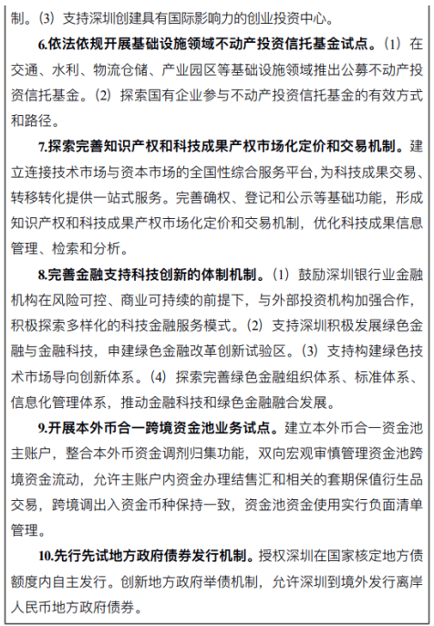 争取国家支持深圳建设科创金融改革创新试验区等等。