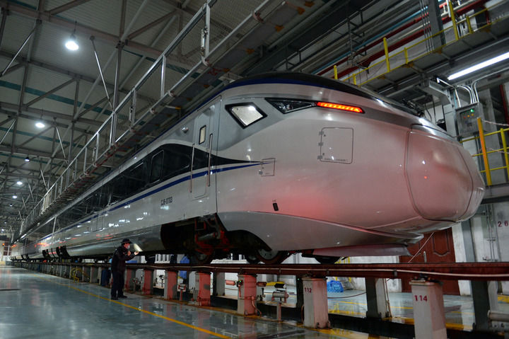 1月13日,广铁集团长沙车辆段职工检查列车。(新华社记者陈振海 摄)