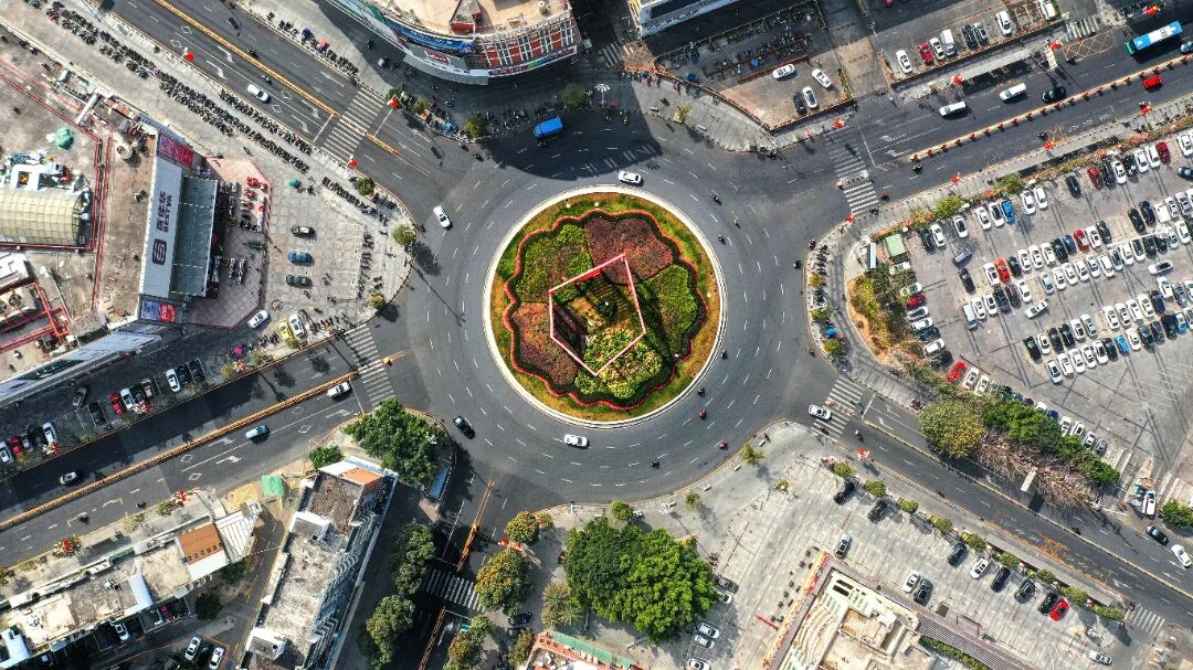 如今的光明,文明之风拂过 美景尽收眼底,走在街头,道路整齐干净、四通八达,行人车辆通行有序。