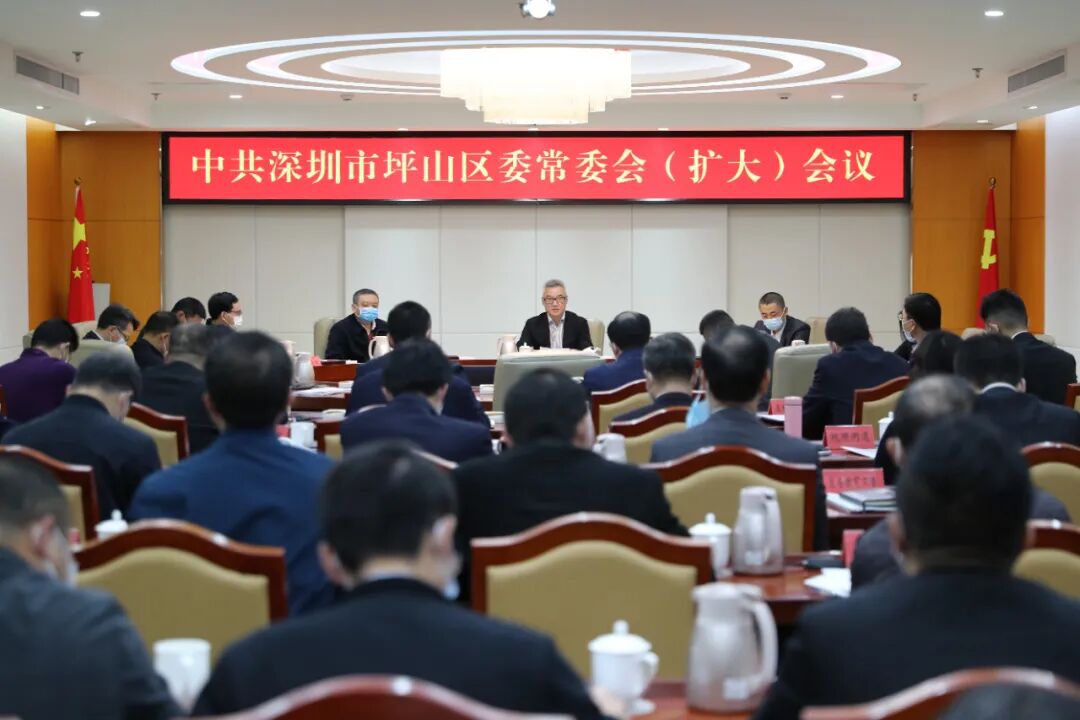 1月20日,坪山区召开区委常委会(扩大)会议,听取区属各党(工)委书记抓基层党建工作述职并进行评议。区委书记杨军主持会议并讲话。区人大常委会主任廖澍华,区政协主席管连秀出席会议。市委老干部局宣传教育处处长林友德到会指导并进行点评。