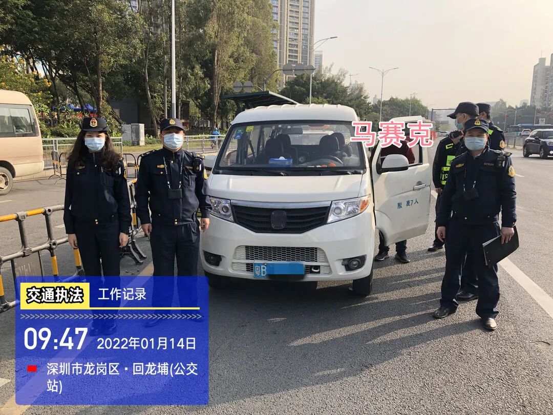 1月14日清晨,执法支队龙岗大队在龙岗汽车总站周边巡查,发现一辆面包车正在揽客运输。