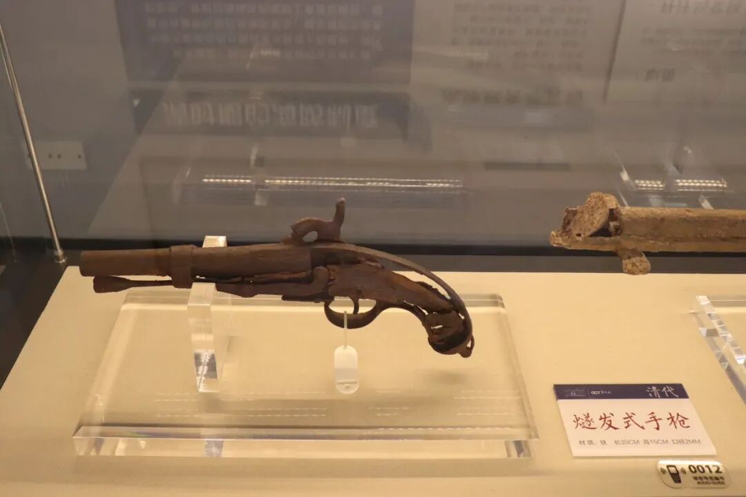 展厅内的文物以组为单位进行展示,依托佛朗机、火铳、军帽等文物讲述海防历史事件,采用多媒体、现场互动展示等多种陈列手法,对展览内容进行延伸阐述。展厅的多个互动体验装置设备提升了展览趣味性,能让参观者在轻松趣味的氛围下对明清时期海防军事文化知识有所了解。