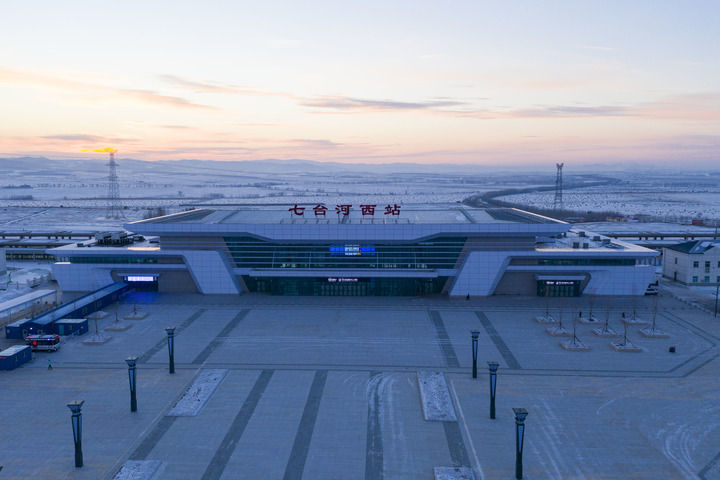 1月12日拍摄的七台河西站外景(无人机照片)。作为中国短道速滑运动的代表城市,黑龙江省七台河市先后为国家培养、输送了杨扬、王濛、孙琳琳、范可新、张杰等多位世界冠军。新华社记者谢剑飞摄