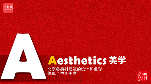 冬奥村建筑彰显中国美学(Aesthetics),全部场馆100%清洁能源(Clean Energy)供应,史上首个零排放(Zero Emission)冬奥会……