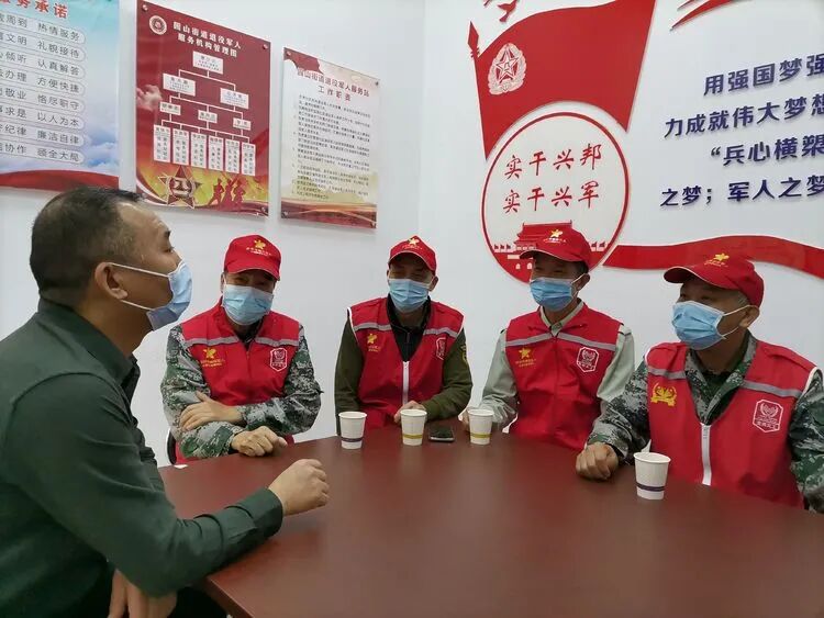随后园山街道退役军人红星志愿服务队副队长康仲尼和退役军人红星志愿服务队代表进行了座谈交流,详细询问了解各退役军人的身体和家庭状况,以及现在所面临的一些困难和需求。