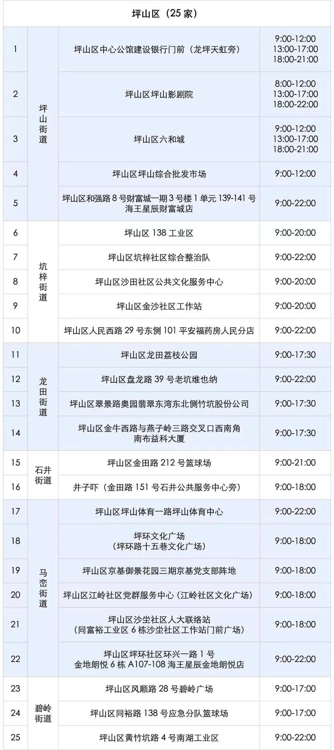 @坪山er,坪山区免费核酸检测点名单来了,快和小编一起看看哪个核酸检测点离你最近?