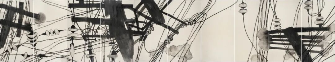 陈湘波《工业时代的记忆》组画 1000cm×200cm 纸本水墨 2021年